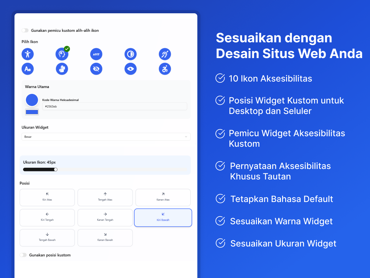 Nikmati widget aksesibilitas terdepan yang dirancang untuk meningkatkan aksesibilitas situs web Anda dengan mudah dan efisien.